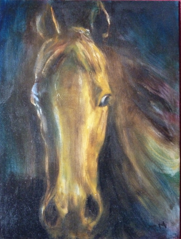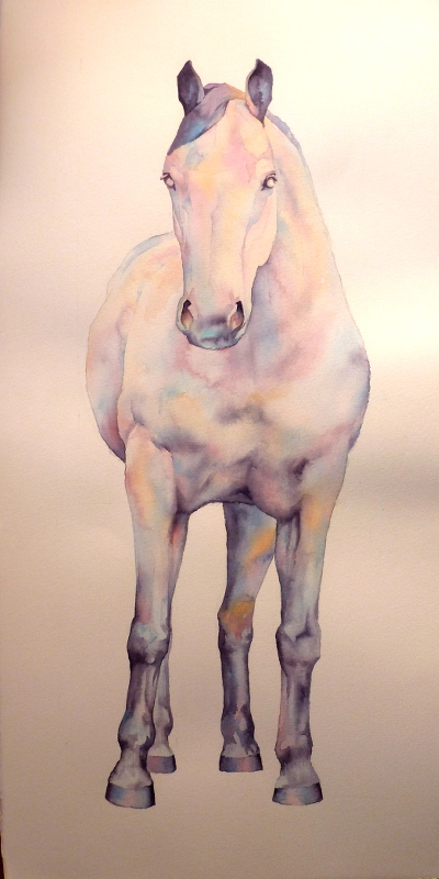 I have always loved horses, and it was a long time before I decided to paint them. I felt that I wanted to paint horses that had an impact that addressed the viewer in some way. So my horses tend to look straight out at the viewer. Sometimes the eyes are very pale, which makes people look closer. It is interesting to hear how people react to them, and I enjoy the fact that each viewer brings something of themself to the horse.
